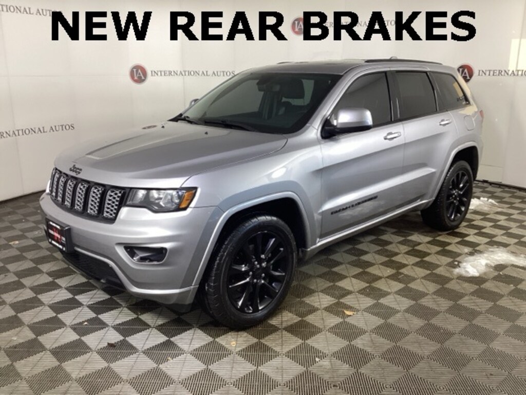 Grand Cherokee Altitude, SUNROOF / MOONROOF, GPS NAVIGATION w/ BACK UP CAMERA, POWER TAILGATE, BLIND SPOT ASSISTANCE, ADVANCE KEY â" keyless start, stop and entry, BLUETOOTH TECHNOLOGY, HEATED FRONT SEATS, AWD / 4WD / 4x4, 1-Year SiriusXM Radio Service, 1-Yr SiriusXM Guardian Trial, 115V Auxiliary Power Outlet, 4G LTE Wi-Fi Hot Spot, 5-Year SiriusXM Traffic Service, 5-Year SiriusXM Travel Link Service, 8.4" Touchscreen Display, Altitude Grille, Altitude IV Package, Apple CarPlay, Auto-Dimming Rear-View Mirror, Black Suede Seats w/Black Stitching, Body Color Claddings, Body Color Fascia, Body Color Shark Fin Antenna, Dark Day Light Opening Moldings, Dark Headlamp Bezel Finish, Dark Lens Taillamps, Front Accent/Body Color Fascia, Gloss Black Rear Fascia Applique, Google Android Auto, GPS Antenna Input, GPS Navigation, HD Radio, Instrument Cluster w/Off-Road Disp. Pages, Integrated Center Stack Radio, Integrated Voice Command w/Bluetooth, Jeep Black Gloss Badging, Power 4-Way Driver Lumbar Adjust, Power 8-Way Driver/Manual Passenger Seat, Power Liftgate, Quick Order Package 2BZ Altitude, Radio: Uconnect 4C Nav w/8.4" Display, Rear Accent/Body Color Fascia, Rear Fascia Black MIC Step Pad, Security & Convenience Group, Security Alarm, Single Exhaust w/Bright Tip, SiriusXM Satellite Radio, SiriusXM Traffic Plus, SiriusXM Travel Link, Steering Wheel Mounted Audio Controls, Universal Garage Door Opener, USB Host Flip, Wheels: 20" x 8.0" Gloss Black Aluminum, 3.45 Rear Axle Ratio, 4-Wheel Disc Brakes, 506 Watt Amplifier, 6 Speakers, ABS brakes, Active Noise Control System, Air Conditioning, Alloy wheels, AM/FM radio, Anti-whiplash front head restraints, Apple CarPlay/Android Auto, Automatic temperature control, Brake assist, Bumpers: body-color, Cargo Compartment Cover, Cloth Bucket Seats, Compass, Driver door bin, Driver vanity mirror, Dual front impact airbags, Dual front side impact airbags, Electronic Stability Control, Four wheel independent suspension, Front anti-roll bar, Front Bucket Seats, Front Center Armrest w/Storage, Front dual zone A/C, Front fog lights, Front License Plate Bracket, Front reading lights, Fully automatic headlights, Heated door mirrors, Illuminated entry, Knee airbag, Leather Shift Knob, LED HEADLIGHTS, Low tire pressure warning, Normal Duty Suspension, Occupant sensing airbag, Outside temperature display, Overhead airbag, Overhead console, Panic alarm, ParkView Rear Back-Up Camera, Passenger door bin, Passenger vanity mirror, Power door mirrors, Power steering, Power Sunroof, Power windows, Premium Alpine Speaker System, Radio data system, Radio: Uconnect 4 w/7" Display, Rear anti-roll bar, Rear reading lights, Rear seat center armrest, Rear window defroster, Rear window wiper, Remote keyless entry, Speed control, Speed-sensing steering, Speed-Sensitive Wipers, Split folding rear seat, Spoiler, Steering wheel mounted audio controls, Tachometer, Telescoping steering wheel, Tilt steering wheel, Traction control, Trip computer, Variably intermittent wipers, Wheels: 17" x 8.0" Silver Aluminum, ** Apple CarPlay/Android Auto, ** Bluetooth, Hands Free, ** Heated Seats, ** Heated Steering Wheel, ** HomeLink, ** Keyless Entry, ** Keyless Start, ** Navigation System, **Camera Backup, *** NEW REAR BRAKES ***, 1-Year SiriusXM Radio Service, 1-Yr SiriusXM Guardian Trial, 115V Auxiliary Power Outlet, 4G LTE Wi-Fi Hot Spot, 5-Year SiriusXM Traffic Service, 5-Year SiriusXM Travel Link Service, 8.4" Touchscreen Display, Altitude Grille, Altitude IV Package, Apple CarPlay, Auto-Dimming Rear-View Mirror, Black Suede Seats w/Black Stitching, Body Color Claddings, Body Color Fascia, Body Color Shark Fin Antenna, Dark Day Light Opening Moldings, Dark Headlamp Bezel Finish, Dark Lens Taillamps, Front Accent/Body Color Fascia, Gloss Black Rear Fascia Applique, Google Android Auto, GPS Antenna Input, GPS Navigation, HD Radio, Instrument Cluster w/Off-Road Disp. Pages, Integrated Center Stack Radio, Integrated Voice Command w/Blu