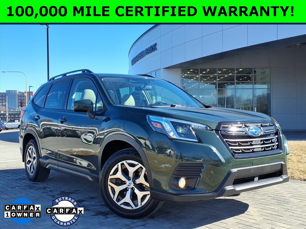 *JUST REDUCED*, PRICE BELOW MARKET VALUE!, Forester Premium, SUBARU CERTIFIED, LOW MILES, BLUETOOTH TECHNOLOGY, Carfax 1-Owner, Multiple Finance Options Available, GREAT BUY!!!, AWD / 4WD / 4x4, 3.70 Axle Ratio, 4-Wheel Disc Brakes, 6 Speakers, ABS brakes, Air Conditioning, Alloy wheels, AM/FM radio: SiriusXM, Anti-whiplash front head restraints, Auto High-beam Headlights, Automatic temperature control, Blind Spot Detection w/RCTA & Power Rear Gate, Blind-Spot Detection (BSD), Brake assist, Bumpers: body-color, CD player, Driver door bin, Driver vanity mirror, Driver's Seatback Divided Pocket, Dual front impact airbags, Dual front side impact airbags, Dual USB Charge Ports, Electronic Stability Control, Emergency communication system: STARLINK Safety and Security (Subscription Required), Exterior Parking Camera Rear, EyeSight System, Four wheel independent suspension, Front anti-roll bar, Front Bucket Seats, Front Center Armrest, Front fog lights, Front reading lights, Fully automatic headlights, Heated door mirrors, Heated Front Bucket Seats, Heated front seats, Illuminated entry, Knee airbag, Low tire pressure warning, Multi-Function High Grade Display, Occupant sensing airbag, Outside temperature display, Overhead airbag, Overhead console, Panic alarm, Passenger door bin, Passenger vanity mirror, Power door mirrors, Power driver seat, Power moonroof: Panoramic, Power Rear Gate, Power steering, Power windows, Premium Cloth Upholstery, Radio data system, Radio: Subaru Starlink 6.5" Multimedia Plus System, Rear anti-roll bar, Rear seat center armrest, Rear window defroster, Rear window wiper, Remote keyless entry, Roof rack: rails only, Security system, Speed control, Speed-sensing steering, Split folding rear seat, Spoiler, STARLINK/Apple CarPlay/Android Auto, Steering wheel mounted audio controls, Tachometer, Telescoping steering wheel, Tilt steering wheel, Traction control, Trip computer, Variably intermittent wipers, Wheels: 17" x 7.0 J Black Machine Finish Alloy. Recent Arrival!